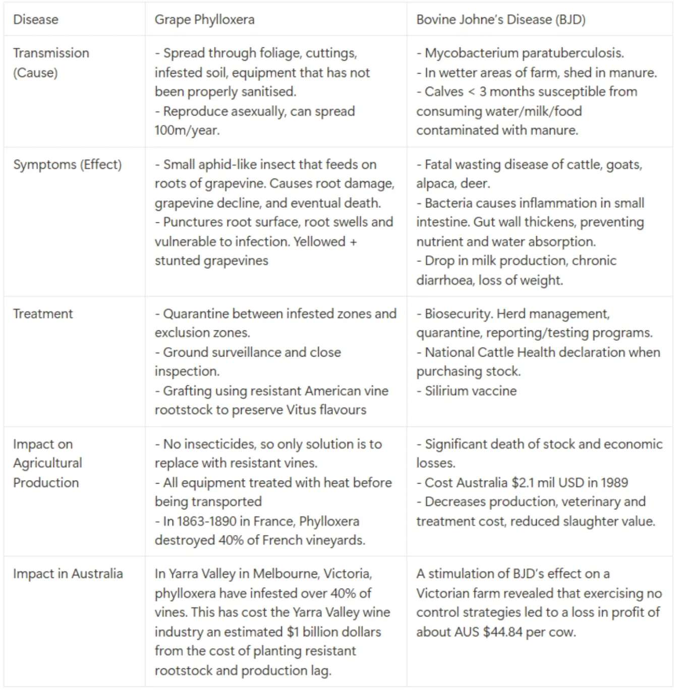 I recommend having an organised table of examples that cover each case is in-depth. For example, the Module 7 syllabus point on agricultural diseases requires knowledge of the transmission (cause), symptoms (effect), treatment, and impact on Australia of specific plant and animal diseases - all of which make great table headings.