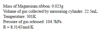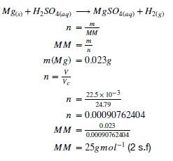 - Using the gas laws and mass-moles relationship, determine the molar mass of magnesium.